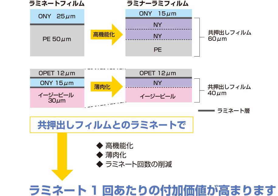 共押し出しフィルムだからできる、高機能シーラントを使った新しいラミネートのかたち!