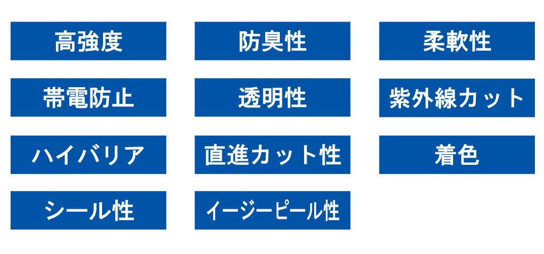 様々な条件に対して、お客様の製品に合わせた最適なフィルム、共押出し技術を駆使しご提供いたします。